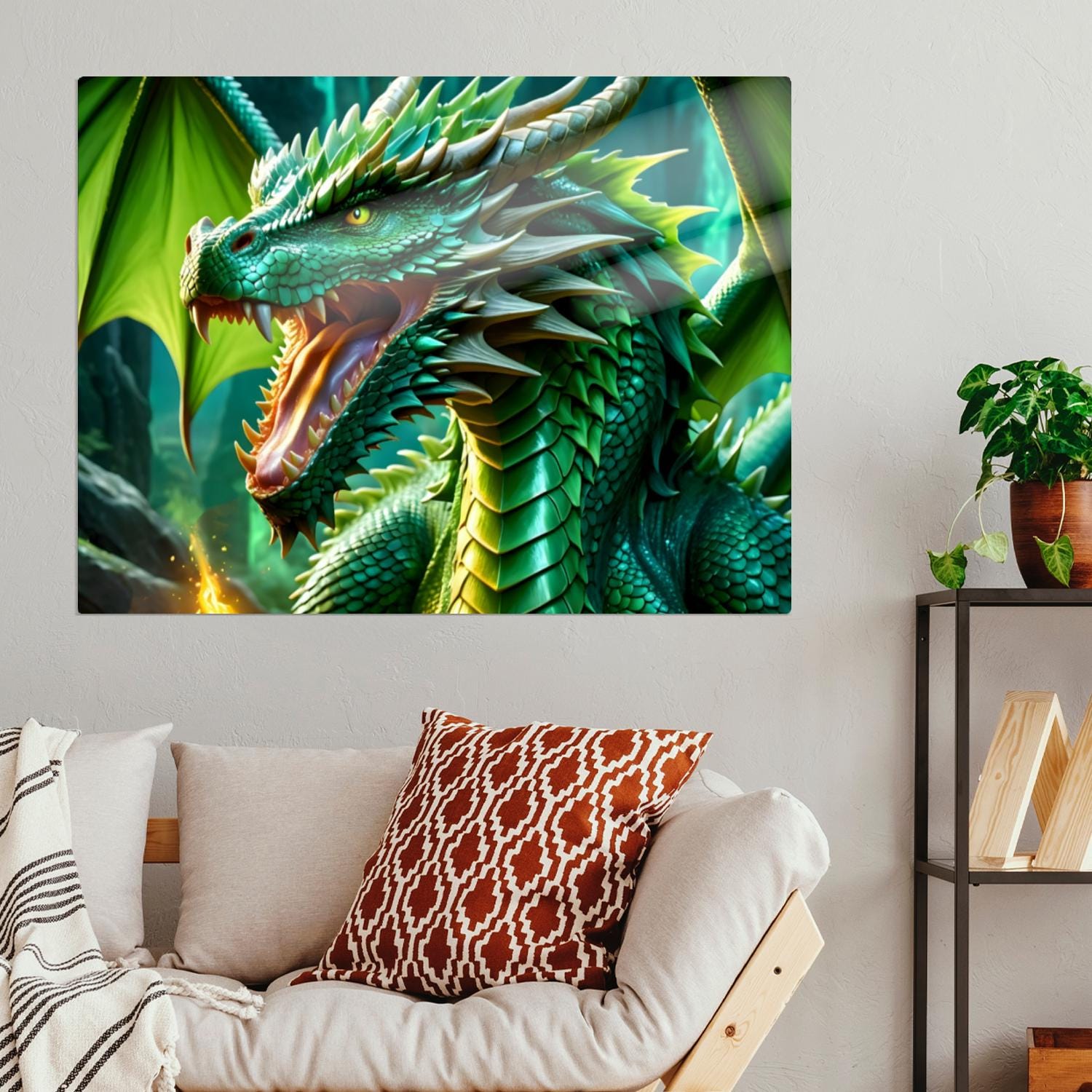 Green Dragon, Printed On Gloss Aluminium To Enhance Colours And Detail, Unique Wall Print, A Gift For A Lifetime...